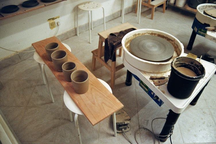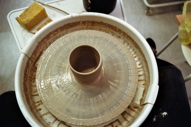 Další den v práci. Pantofle dosluhují, ale do mateřské zbývají dva měsíce, to už nějak doklepem. Po práci jedu vyswapovat kočičí fontánu, kterou nepoužíváme, za tunýlek, který by snad potvory mohl bavit. Večer pak trávím v dílně, točím hrnky a recykluju hlínu (blátíčko). Tunýlek má u koček úspěch.