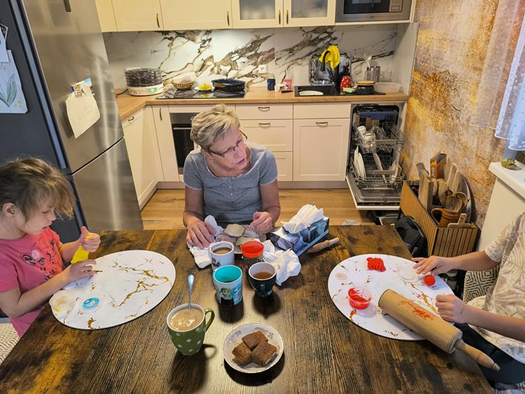 (1) Práce s plastelínou (2) Čtu časopis z knihovny (3) Oběd (4-5) Práce se dřevem (zatekla tam voda) (6) Svačinka (7) Odměna (8) Hádanka (9) Loučení