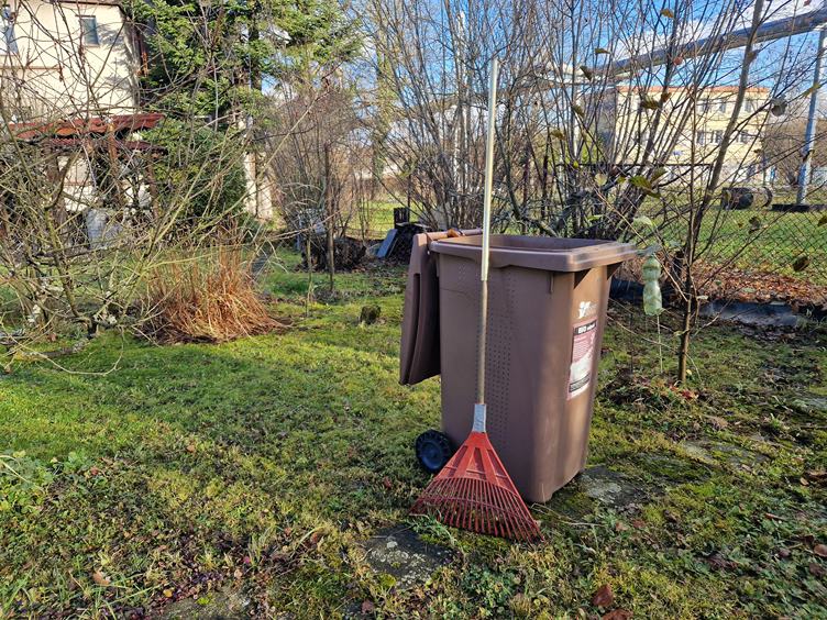 Naštěstí jen straší … ale mrzlo … půlhodina na poště (mezi nové služby patří, že doručovatel místo doručení obálky nechá jen ve schránce oznámení) … předposlední úklid zahrady … zahradní detail … nákupy … západovka … 6 litrů guláše … hotovo, bude tady i pradědeček …