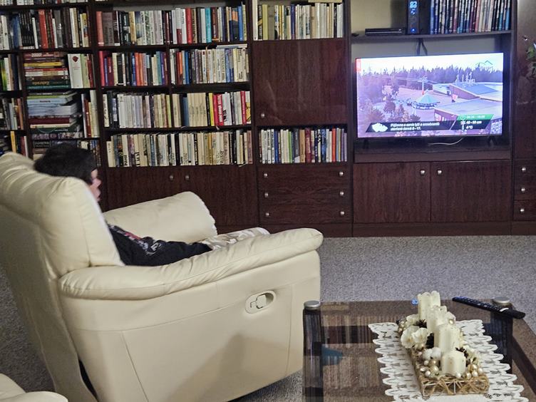 Neděle 14.12.2025 Sledujeme Panoramu. Bárt s dědou stavějí něco z Merkura. Čtu Svatou. Tonda měl narozeniny. Pokračování Merkur. Odpoledne návrat do Prahy.