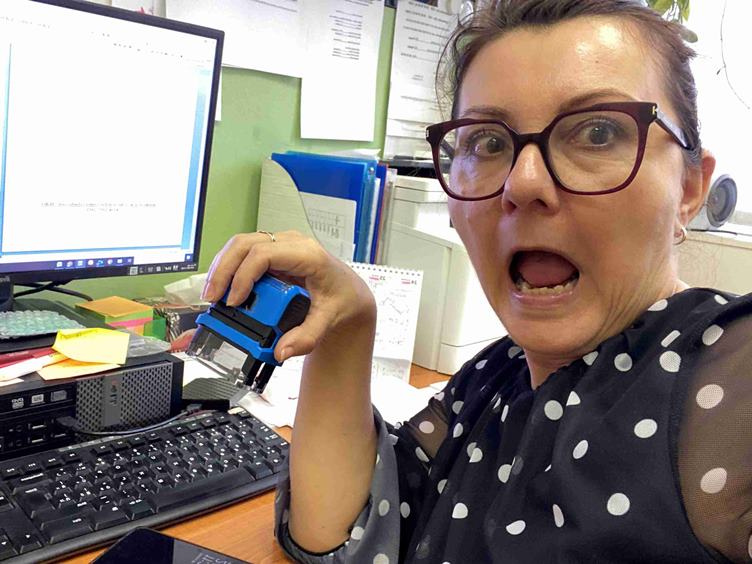 hviezda - vynovená * baby mi poslali krásne foto z práce, ja takú stresovú, veľa vecí treba * ale cez obed niečo len a len pre mňa * ofarbené nechty * a vybaviť koberce * hladoška už čaká * A nechce tancovať, tak sa hrá ... * ideme spolu domov * a doma maľuje i číta