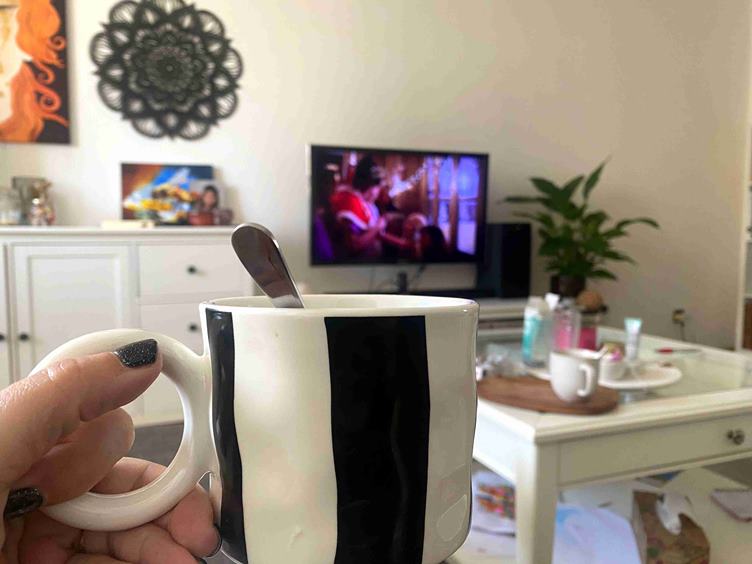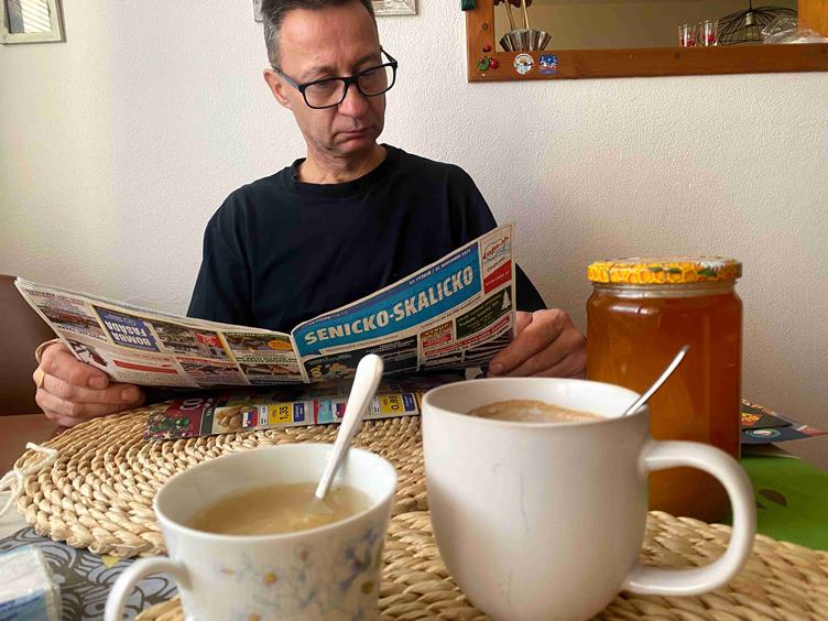 bolesť hrdla ma budí skoro, nezvyčajné svetlo bez hmly * raňajky, alebo prelievam bezhlasé hrdlo kávou, čajom, vodou ... * milá spomienka * a čaj aj u telky, snažím sa oddychovať a spať * tiene * nedá sa mi dlho len tak sedieť * niečo si navarím * a pozriem krimi * a nabieha mi, že by som sa mala už naštartovať na pečenie