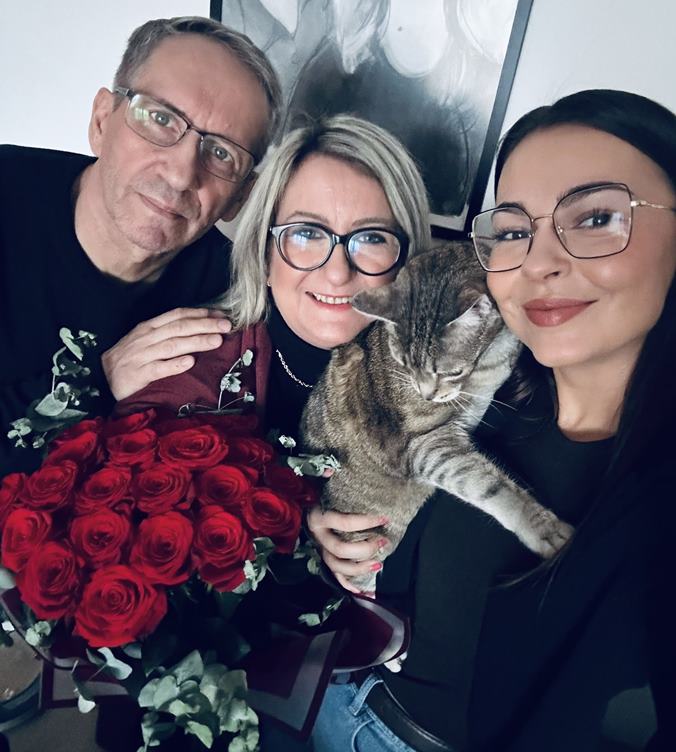 Ahoj nedeľa, aj dnešok bude oslavný 😍 Teším sa z krásnych ruží čo som dostala od manželína 💐Hugi pózuje 😻 Moje všetko na svete na jednej fotke ❤️ Ideme na slávnostný obed 🥰 Fajn reštaurácia a jedlo top 👌 Ešte kávička a creme bruleé 🫶 Vyberám si darček od kolegýň - nové hodinky 🤗 Aj Hugimu sa páčia 😘 A rodinný večer s kartami - vyhrala sooom 💪🤣