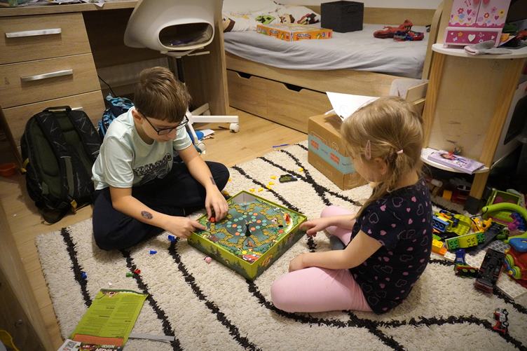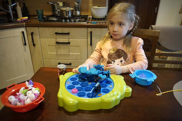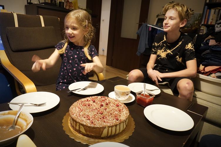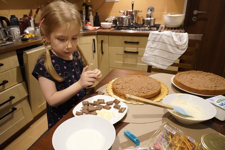 Ľudka už mala upečené korpusy na krstiny a keďže sme nešli, upiekla z nich tortu. Dianka liečila plyšákov. Večer po potriedení ponožiek som sa hral.