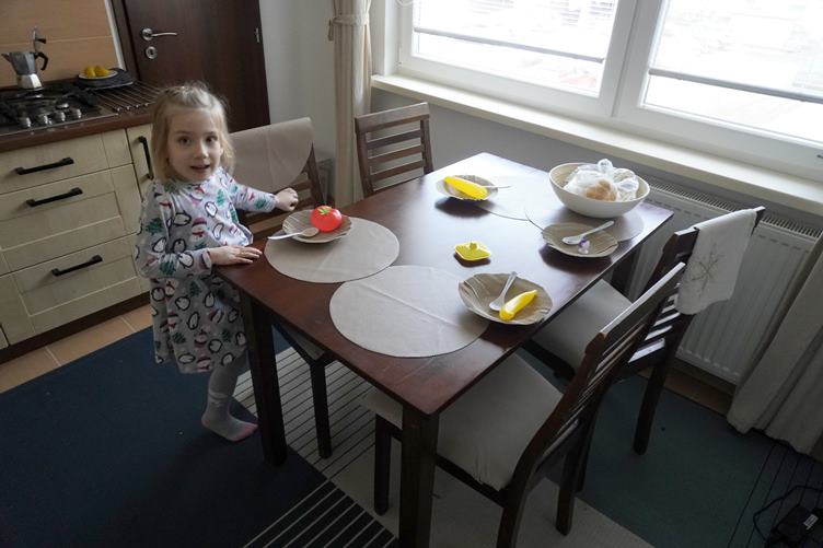 Celý deň sme boli doma. Dianka navliekala korálky. Večer som sa hral na počítači.