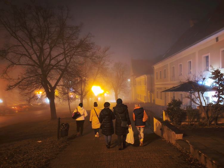 Ráno mlží :o). Obedujem. A po práci fičím k zámku na punč. Jurko mal chuť na horúcu čokoládu. A vymákla som u pódia Zdenku :o). Rozlúčila som sa s našimi a išla som za sokolkami. Také výborné jelítko som mala. Mňam. Zase za tmy domov :o)