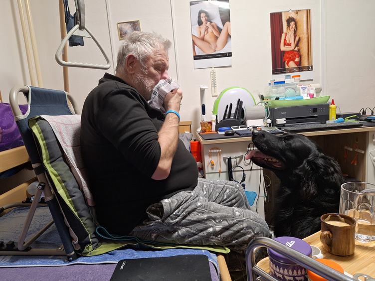 Ramón asistuje Alfimu i při smrkání. Čím víc jsem nešťastná ze situace s prací, tím víc jsem šťastná s Alfim. Venku taje sníh. Alfi dostal dárek, stojánek na telefon..