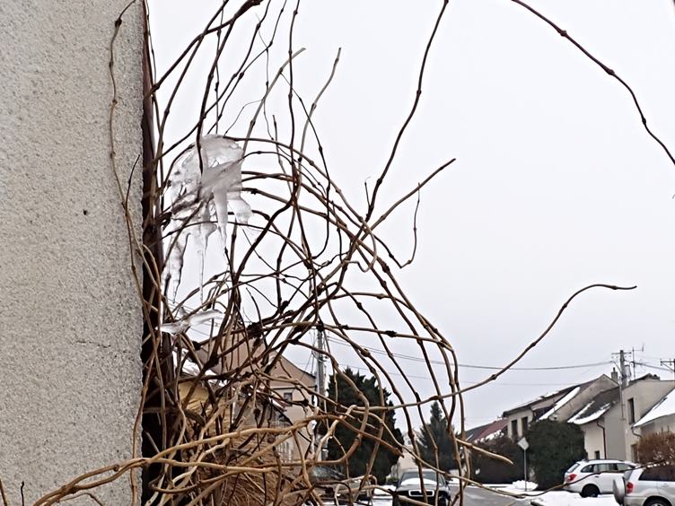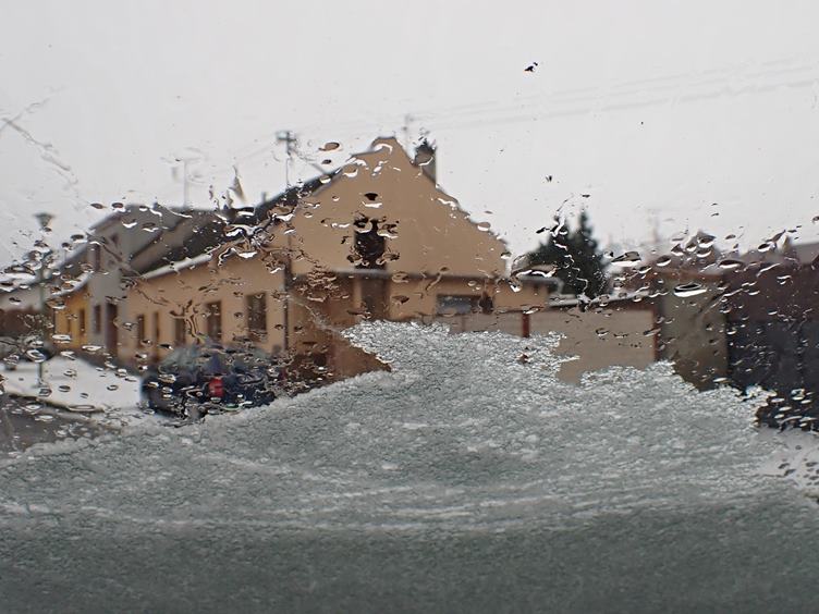 Začalo pršet... Ale jedeme nakupovat... Dnes uzené s gnoči... Rampouchy se zmenšily... Nosím pásek i kšandy - no a ...