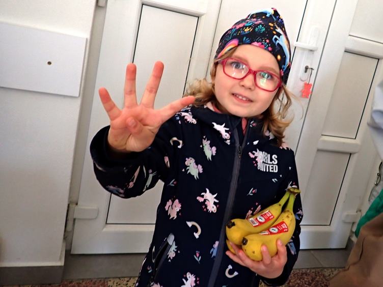 ... Sofinka s banány... Černá obloha a sousedovic bílý dům s odrazem v černé střeše našeho auta...