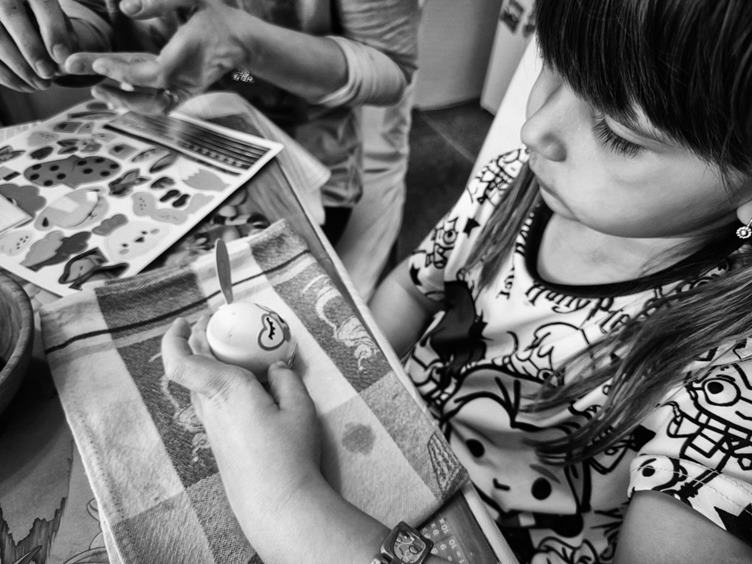 1. Filípek vstal i po těžké noci s celkem dobrou náladou 2. Byl ale uondaný a skoro celé dopoledne mi podřimoval v náručí 3. Rodinka se opět vydala na hřbitov a Anežka musela i na takovou vycházku samozřejmě vypadat dokonale 4. Filípek tentokrát usnul docela tvrdě 5. Sice nakonec nespal moc dlouho, ale i tak jsem si stihl opět zarelaxovat u téhle knížky 6. Počasí bylo už takové, že prádlo se mohlo sušit venku 7. Anežka s mámou zdobily vajíčka, která jsme jim navařil 8. Fili s Anežkou v rámci svých her pozorovali cvrkot na ulici z mojí postele 9. Chlebíčková večeře - já měl jen polívku