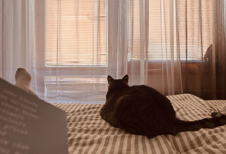 Kukuk, som Hugi a som krásny 😻 Sýte raňajky a boľavé telo 🥹 Hugi driemká a ja idem tiež 😊 Driemať s knihou v ruke je fajn 🤗 V najlepšej spoločnosti ❤️ Hranice - už viem čo toto slovo znamená 🙏 Vonku je krásne ale mňa bolí veľmi chrbát a tak dnes mám day off 🙌 Hugi mi pri tom asistuje 🥰 A ja listujem v spomienkach 😎