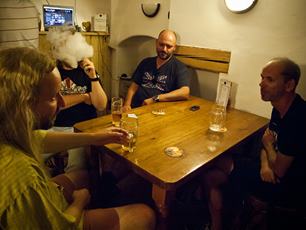 Ranní čaj. Připravuju různé věci na vernisáž. Vracejí se hice. V centru se něco děje. Lampa. Jsem na workshopu zpěvu s Idou Kelarovou a jejími kumpány. Učíme se romské písně. Večer jdu na Idin koncert, který byl skvělý. Jak oni říkají: "Hrajeme jazz pocikánsku." Pak jsem se ještě stavila za lidma v hospodě.