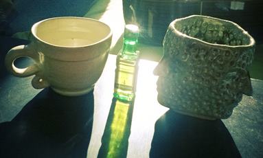 Vstáváme do krásného dne na chalupě. Snídaně. Loučení ... bylo nám tu báječně. Celý den se kochám tím sluncem, světlem a teplem a nabírám energii do dalších dní. Večer jsme začala dělat obraz na zakázku. Pak dopíjím víno ze včerejška.