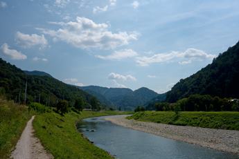 V každém městě, které KHM zmiňuje, musím pořídit foto. V Celje se odchylujeme od jeho trasy a jedeme podél řeky Sáva. 113 km