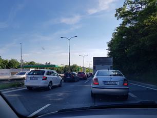 Pul dne za volantem... ráno brzo do skoly na plavání, sleduju, jak se po deštích všechno zelená, celkem pěkný pohled. K dětské doktorce pro potvrzení do školy v přírodě, zpátky do školy nabrat syna a asistentku a přesun do jiné skoly vyjednávat přestup od příštího školního roku. Vypadá to nadějně. 150 km k babičce, naštěstí D10 i D8 bez většího zdržení. Jahody u babičky, předat dítě, opět D8, směr Praha. Zácpa v Holešovičkách, ale stíhám. Večer Cimrmani!