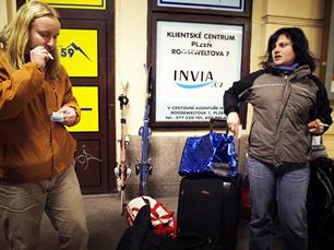 Balím se před odjezdem. Umývám nádobí. Něco na mě leze, tak se to snažím setřást. Pepa mě změřil a budem pozorovat, jestli se stárnutím budu zmenšovat :-) V posledních dnech nebyl čas ani přehodit kalendář. Prcek :-) Už sedíme ve vlaku do Plzně. Cígo na plzeňským nádraží. Čekáme na autobus, co nás odveze na hory.