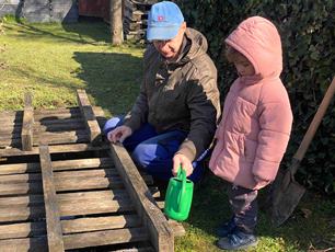 naši pomocníci dorazili, malú zaujíma iba voda * pečiem * a ukecávanie dedeho, že ešte musí ísť polievať * tak polieva - je veľmi veterno * ale vnútri to vonia * kým všetko upracem - je čas večerný * zastriem, zostávame na chate * oddychujem pod dekou * treba ešte naložiť, nech nám nie je v noci zima