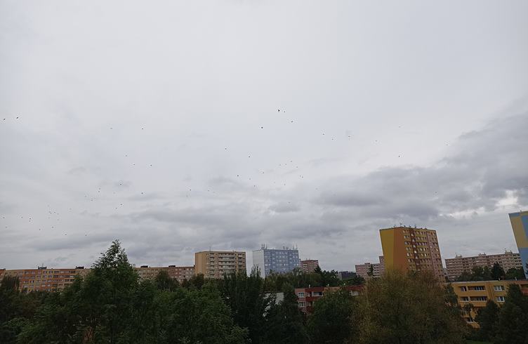 Ráno v Ostravě. Jdu na nákup. Sleduji fotbal. Není to moc vidět, ale hejno ptactva přelétá nad Hrabůvkou. Vážení. Noc. Dá se vsadit na volby. Tak na ty nevsadím i když je tam titulek. Vsadil jsem na něco jiného, první část vyšla a ta druhá záleží na našich volejbalistech zítra. Uvidíme, jak to dopadne. Ochladilo se tak, že musím vzít zítra zimní bundu.