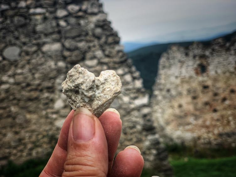 ráno razíme na Čachtice..mou radost, jak jsem nafotila kresbu původního hradu se zříceninou mi kazí muž, že to mám blbě..tak ať ..hrad je krásný..zatahuje se a padá mlha...tak proč konečně nejít na Velkou Javořinu - výhled žádný, ke kávičce v Holubiho chatě dostáváme srdíčko- večer trávíme popíjením vínka z Čachtic a hraním
