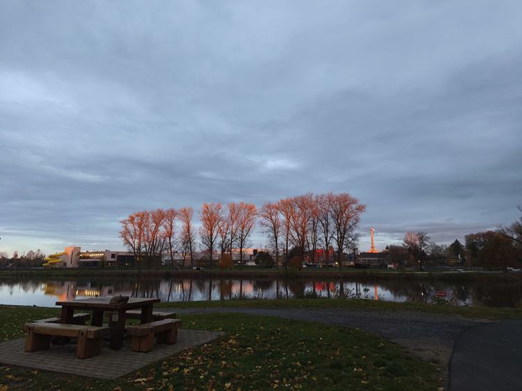 Ráno se pomalu barví stromy ... Cesta přes lávku ... Připravil jsem na opakování osmisměrku ... Jak dopadl můj vygenerovaný film? ... Hodina informatiky ... Na lávce s fotogenický mi mraky ... Jediný mámou na hřbitov ... Čau táto ... A zas domů.
