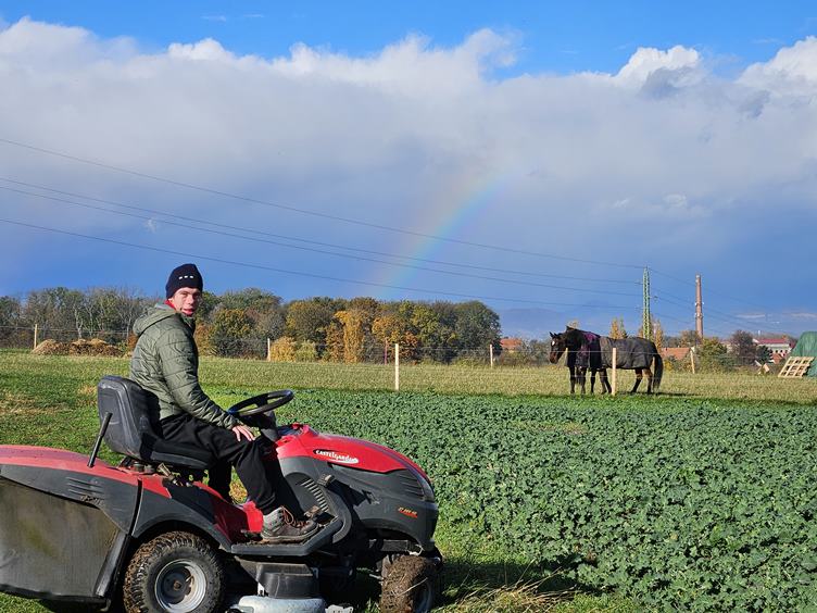 Co v úterý vyasfaltovali, to dnes zase vytrhávají. Udělali to blbě. Jsme dopoledne venku. Roční období se mění co půlhodinu, slunce, průtrž mračen, poryvy větru, i duha byla. Večer jedu do Prahy, než se setmí, jdu se projít na Prosek. Příjemně mě to tu překvapilo. Večer zoom se SPMP.