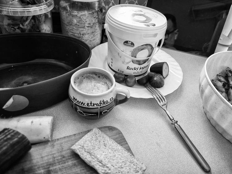 1. Dnes jsem u školky svou malou koloběžku zaparkoval vedle velkého kola 2. Filip mě doma už netrpělivě očekával 3. Dopoledne se pokoušel upravit v kuchyni náš bytový design 4. Já vařil, dělal salát, koukal na streamy a pil kafe a to vše najednou 5. Pro Anežku jsme šli s Filípkem spolu a málem jsme si odvedli i druhou Anežku 6. Vedli jsme jí do Hýbánek, kde jsme jí pak taky museli vyzvednout 7. Cestou domů jsme potkali mou dvorní zdobitelku triček a jedno jsem do ní zrovna koupil, ale Fili ho nechtěl mámě ukázat 8. Dobrý, ne? Pokud byste chtěli vidět v barvě, přijeďte na návšěvu ;) 9. Anežka ode mě dostala velké Kinder vajíčko s Batmanem