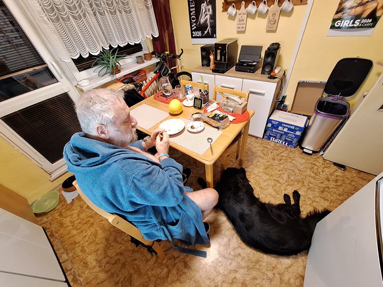 Ponocujeme a posloucháme pana Hnízdila, velmi rozumný člověk.. Ráno sundám fáč z nohy a pajdám s Ramim ven.. Až asnu, nasněžilo😆😆😆 Po nebi táhnou nějaká ptačiska.. A až si po obědě spočneme, jdeme ven znova.. Až se vrátíme, Alfi mne políbí a uděláme si hezké odpoledne, jen my dva a písničky, kávička a rum na zahřátí❤️❤️ Na předposlední fotce je poslední večeře páně tohoto týdne.. Po vánocích zbyla jenom tahle jediná malá rybí kostička a až ji zahodím, začnu se těšit na vánoce příští...🌲