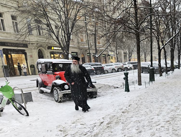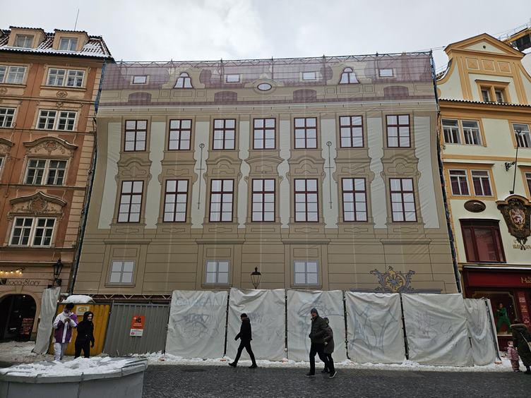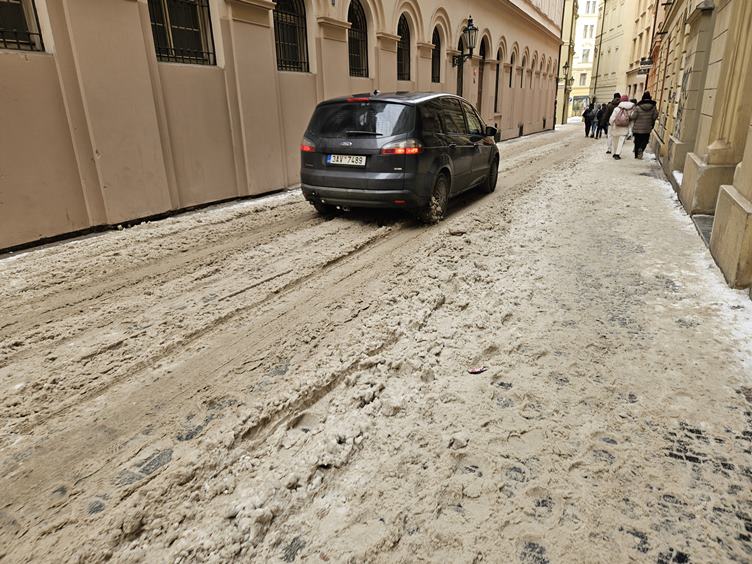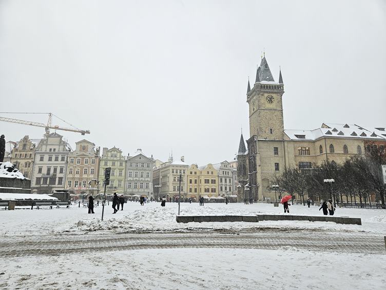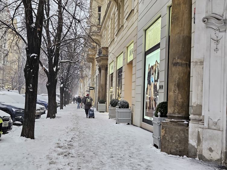 Pondělí 12.1.2026 Je pondělí, tak mířím do práce. Kolem Staromáku je pořád sníh. Citát dne... Krásné dveře v Celetné. A Pařížská cestou na tramvaj.