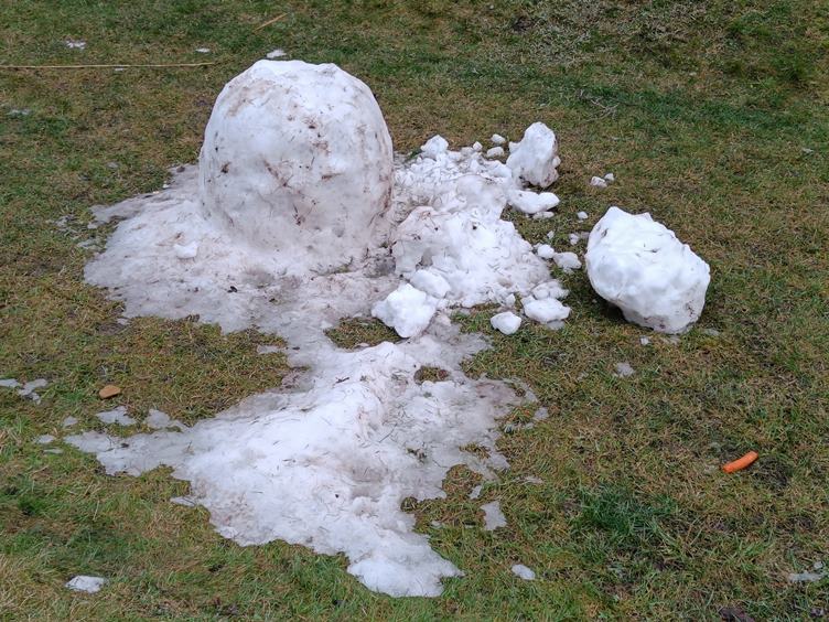 Mráz mi zmaloval dlaždice na balkóně. Po baňkování. Jedu na další elektro. Cestou zpět je v metru na Hájích pozdvižení. Sněhulák už je na kousky. Nechám Šmudlu vyluxovat, ale koukám, že by sám potřeboval pomoct od prachu. Čeká mě další cvičení. Navečeřím se. Zatím ještě chaloupka odolává.