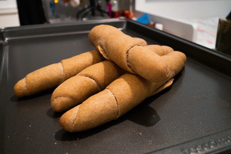 Snídaně. Práce s jizvami. Zkouším druhý pokus o celozrnné rohlíky. Během kynutí zmáknu objednat léky. Umotáno. Uvařím si večeři. Rohlíky upečené, vychladlé a rozhodně vypadají lépe, než první pokus. Čeká mě cvičení. Někdo se směje, někdo by plakal... obzvláště, když se jedna kravina omlouvá druhou.