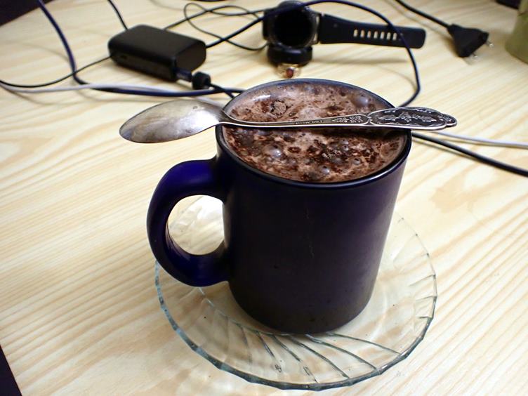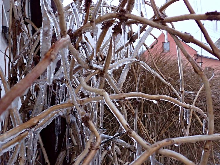 Klesla teplota... Našli jsme úschovnu pro masážní ježky... Oběd... Dovezli nám Puellu.... Sníh na cestě taje... Rampouchy pláčou... Na chodníku zůstavá popel, který jsme sypali při náledí... Horké kakao v modrém hrnku na zahřátí...