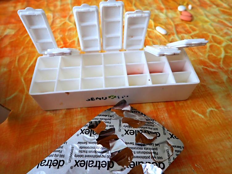 Ráno pohled na ulici, doplňování lékovky a ostravská klobása zapečená v sýru... Klokanky... Sníh na dvorku... Barvení... Večeře... A nový obrázek z internetu na ploše notebooku...