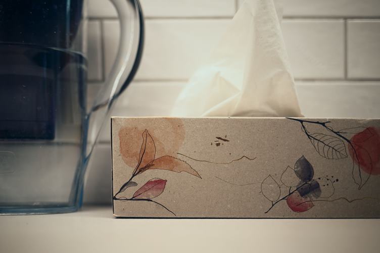 Necítím se úplně OK, ale vybaluju nového mazlíka - trochu opožděný vánoční dar. Proč fotím papírové kapesníčky? Líbí se mi ten design. Recyklovaný a vkusný. Zahrada vypadá recyklovaně až příliš. Vybrala jsem pár věcí na prodej, i když to nejsou úplně všechny, co jsou na fotce. Je pátek, zase nakupujeme. V obchodním centru je výstava fotografií. Zákusky jsou na pohled krásné a předražené. Ale design u Hájka mají pěkný. Jako z padesátek.