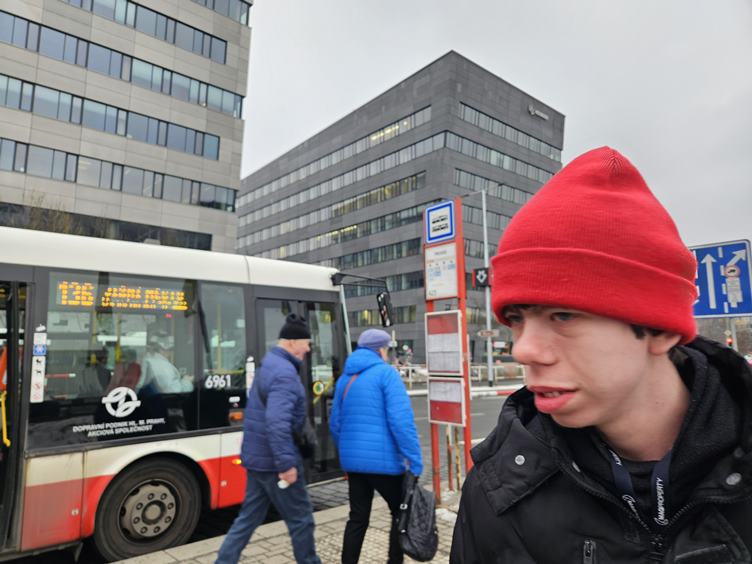 Úterý 3.2.2026 Cesta do školy. Doma homeoffice. Na Opatově pořád sníh. Domů jedeme přes Prosek a nebyl to dobrý nápad. Dlouho čekáme na trolejbus, fouká tu, řve dítě. Večer zoom s Willíky. A v noci zase napadlo.