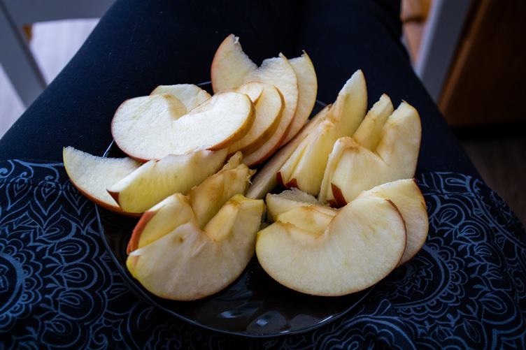 Masíruji. Překonala jsem se a vytáhla výzdobu. Zajdu se vyvenčit. Dám si vitamíny. Poklidím, abych mohla cvičit. Připravím si snídani.