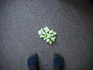 Vstali jsme. Co jsem našla pod víčkem. Vyzvedla jsem hotové vizitky. Rychlý kuk na Week of Life. Balík je zabalen, toto zbylo. Odraz. Na výstavě studentů fotografie z Bratislavy - fotografie pro nevidomé. Barvy všecky. Dnes je výročí TGM a současný prezident končí.