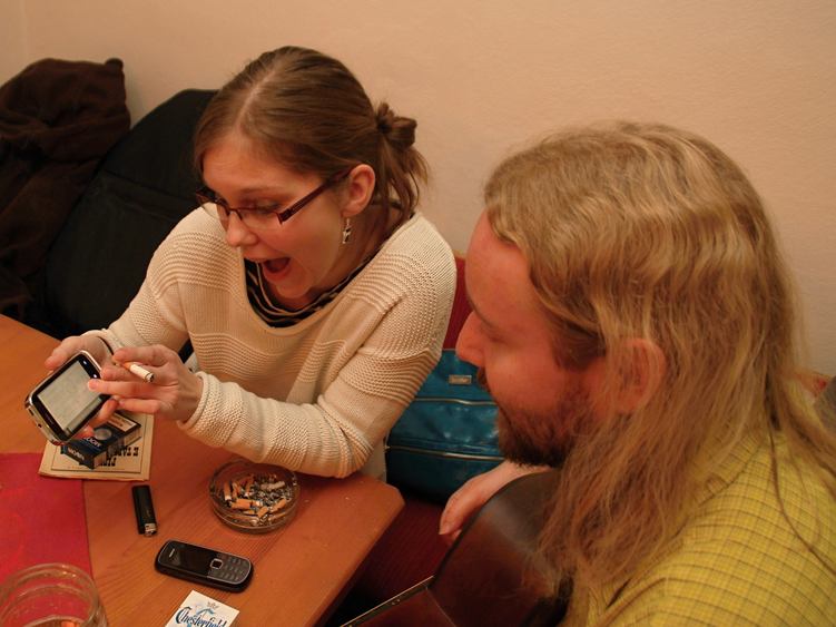 Ještě to nekončí, jdeme do další hospůdky, kde Pepa hraje skvěle na kytaru a hospodskému se to tak líbí, že se přidává s kontrabasem. Pepa přivedl kamarádku z hudební branže a tak se z nás stává taková photosound společnost. Je to naprosto skvělé, do postele se dostanu někdy po čtvrté ranní. Asi za dvě hodiny vstávám a jdu do kavárny Měsíc ve dne, kde má netradiční výstavu Milan Krištůfek, včerejší porotce univerziády. Žádný koncept, čistá poezie. Je to skvělé. Setkávám se tam znovu s Lenkou a Emilkou, kterou pak jdeme vyprovodit na nádraží. Rozloučím se také s Lenkou a jedu do