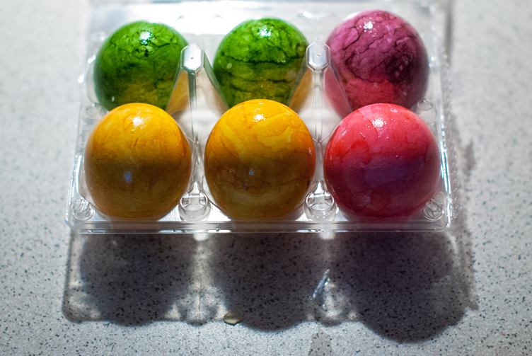 Trošku s předstihem, ale jsou výborné - dnes se snídají velikonoční vajíčka. Počasí dnes předvádí neskutečné divy a bouřkové mraky se předhání v řádění. Těch 20 minut, kdy svítí sluníčko a na chvíli ustává déšť, využívám k přesunu domů. Tam už mě čeká třídění šatní skříně, práce na fotkách a další domácí úklid. Poslední dobou chodím pracovat spíš domů než do práce :-)