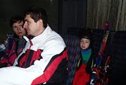 K pobytu patří, když je zájem, i pes Teo. Byl to mazel i na vycházky (když už nemůžeme lyžovat) s námi chodil. A ta houpací síť.. Po obědě pivečko na terase jako v létě. "Ale jestli nasněží, tak voběhnu Jindřišku jen v plavkách. Kdo do toho de se mnou?" Sjezdovka sice mimo provoz, ale na první Domiho pokusy na lyžích to stačí. A na večerní chlapský sjezd na pekáčích do hospody taky. Po tmě člověk vyjede z tratě raz-dva a je hned od blata.. :-D Zpátky doma - "Kdo dokáže zvednout zápalky a nedotknout se ničím jiným než nohama země?"