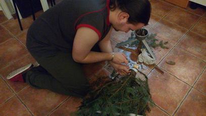 1. Vytrhavame chloupky. 2. Nase zahradnictvi. 3. Jdeme na nakupy, najit misto na zaparkovani byla fuska. 4. Uz odjizdime. 5. Byl jsem si zacvicit. 6. Uprava stromku, nechtel se vejit. 7. Uz je tam. 8. Mame nazdobeno. 9. Usiname pri Comebacku.
