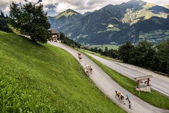 ...1...dnes je zase slunce nad mraky, tak se opět jdeme rochnit do teplé vody. Máme všechny bazény skoro jen pro nás...2...odpoledne vyrážíme na Fulseck. Lázně pod námi a my se třeseme strachy, výšky jsou to přenádherné:)...3...ale jsme v civilizaci tak si nahoře dáme nohy na kanape:)...4...pak míříme na cestu kolem jezírek, lavic a prastarých borovic, pecka...5...výhledy nás nepřestávají fascinovat...6...a místní číču zase fascinujeme my...7...podvečer už jen kolem penzionku - beník mě měří jak fotím:)...8...děcka vedou krávy domů-nejstarší bude mít tak deset. tomu říkám perda...9...mraky malují a my se čouháme na podvečerní hory