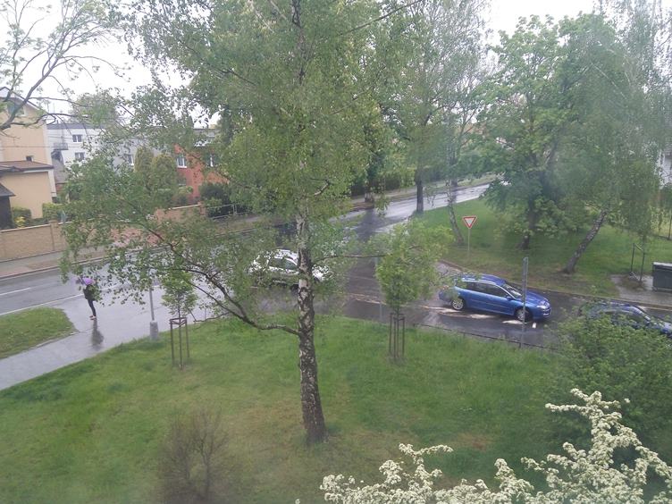 Ráno prší. Zaplaťpánbůh. Když čekám na autobus, všechno je mokré. Je to úžasné. Pořádně nepršelo... no, od zimy. Ještě uvařit kotel čaje a jdeme na Xamarin. Vlezla jsem si na učebnu, kde výuka už byla, takže to tam funguje. Budeme ale jinde. Správci dneska píšou první zkoušku z Linuxu. V Přívoze kvetou tyhle kytky. Jedu domů dost pozdě, ale data se snad přece jen povede zachránit... Západ slunce je tentokrát pěkně barevný. Před spaním tentokrát probíhá fotografická příprava.