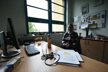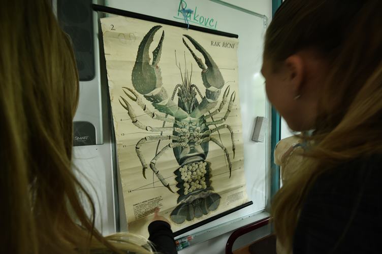 Dnes mi nastupuje žena do práce (to je mazec, jak to uteklo) ... Informatika ... Holky z devítky jsou fascinovány rakem ... Hrajeme biologickou vědomostní hru ... Lenka zapisuje ... Dnes zkouším Honzu ... Když nezkouším fotím ... A zkouší kolegyně ... "Víš co je to tati?" - bylo to jablko.