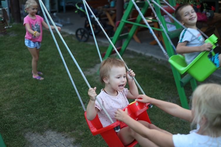 Hela má svátek, přijede i Jura s mamkou. Všem chutnal můj steak. Chladíme se u bazénku. S dětmi jdeme do Zanzíku a Hela může v klidu uklidit chatu.