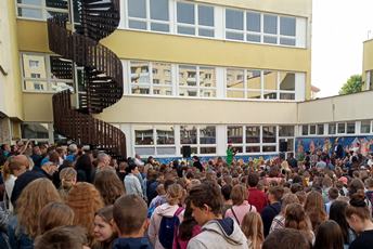Doobeda som šiel pozrieť na Samkov prvý školský deň. Do práce sa s nami prišiel rozlúčiť exkolega Martin. Po práci sme sa stretli na detskom ihrisku.