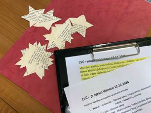 kaktus - teším sa každé ráno * aj dnes montujeme police, už máme nacvičené - dnes sme rýchlejší * a na obed príde mail, že si musíme svoj program v zámku uviesť my - tak organizujem, pripravujem reč :))) * Ľubko chce tiež fotku * v zámku - pozbierať sa * čakáme na vystúpenie * a vyzimení odchádzame domov, ľudí je tu stále veľa * aj anjel nám to odpískal * u dievčat trocha rozmrzneme
