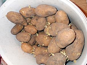 Snídaně... Kuřecí paličky k obědu... Doplnil jsem plyn v zapalovači... Brambory začaly klíčit... Sněžné mraky potemnily oblohu... Kolem nás projel nějaký neznámý traktor... Květina s červenou čepicí a jeden upadlý list... Sáček z přerovské pekárny...
