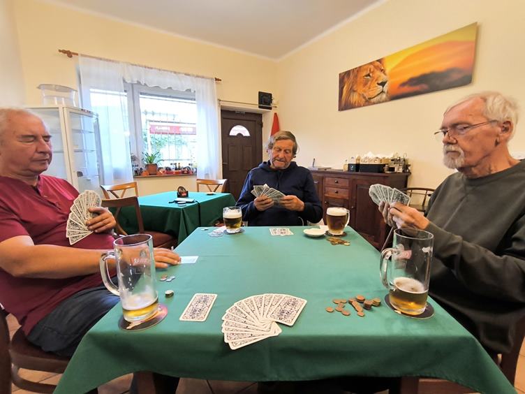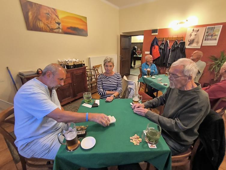 (1) Hela odchází na cvičení (3-5) Dělají nám chodník (6) Jirka dostal od Huga nové taroky z roku 1957 (7-8) Bylo nás na dva stoly (9) Jedu pro Helu do Polanky, má tam babinec. Prší a cesta je místy neosvětlená, ještě že navigace v mobilu mi hlásí, kde mám odbočit