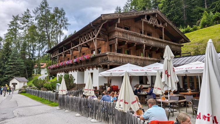 Ráno vyrážame busom do Soldenu, ale nečekane sa pridávam k partii, ktorá vystupuje skorej a ideme turistikovať k vodopádu a naspäť pešo do penzionu. Vodopád Stuibenfall je vysoký 159m a my sme si to vyšli až hore. Hore v huťke sme si dali obed a pokračovali sme krásnou alpskou prírodou až do Tumpenu. Tam sme si stopli náš bus. Večer sme sa ešte prešli po Oetzi. Kostol sv. Juraja je nádherná dominanta mesta a sú z neho krásne výhľady. Dokonca nás aj teraz večer pustili dovnútra. Úžasné.