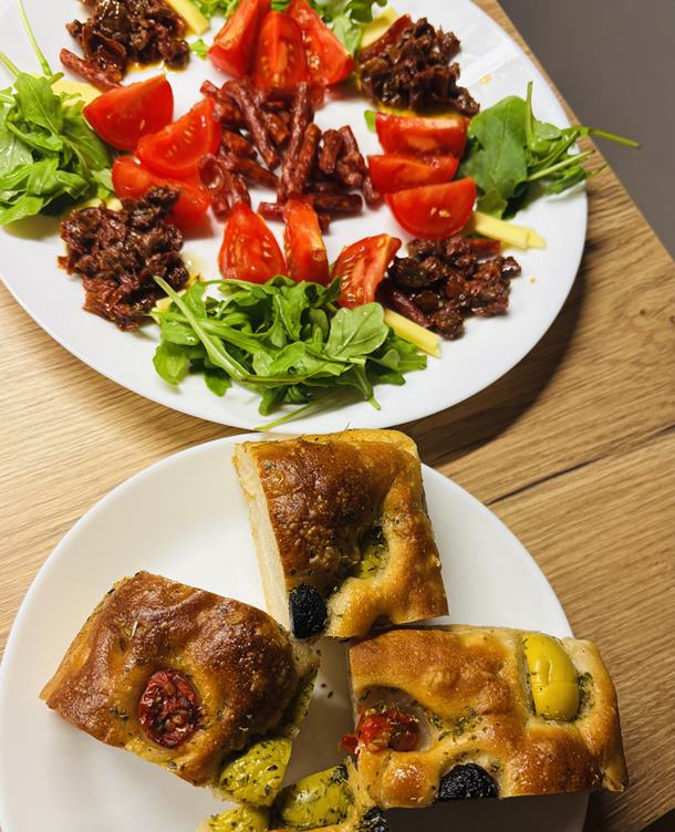 Táto fotka vznikla už v prvú sobotnú hodinu 🙈 Neskorý snack pre mňa a Zuzi, ktorá sa vracia z Bratislavy 🫶 Ale bolo to mňam 👌 Potom dlllhý spánok - aj my aj Hugi 😻 A lenivá sobota 🤗 Kreslím 🙌 Prinesiem uhorky k obedu 😊 Prejdem sa 👍 Fotohrátky 😍 Večerný pohľad z okna na západ, lebo je krásny 🍀 Huginko ❤️ A nočné snehové prekvapenie 🥰